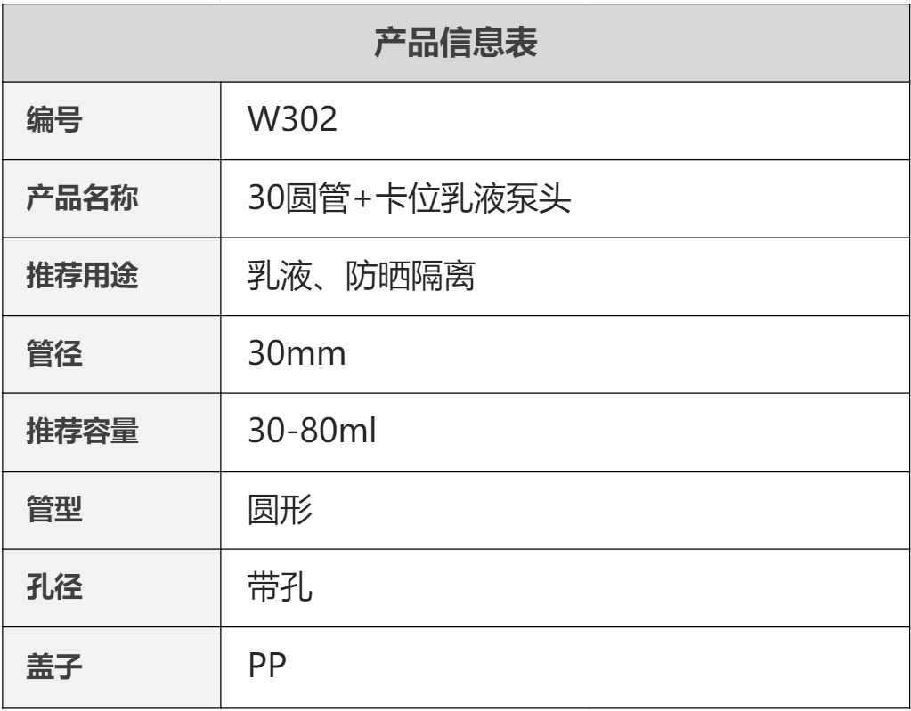 30圆管+卡位乳液泵头